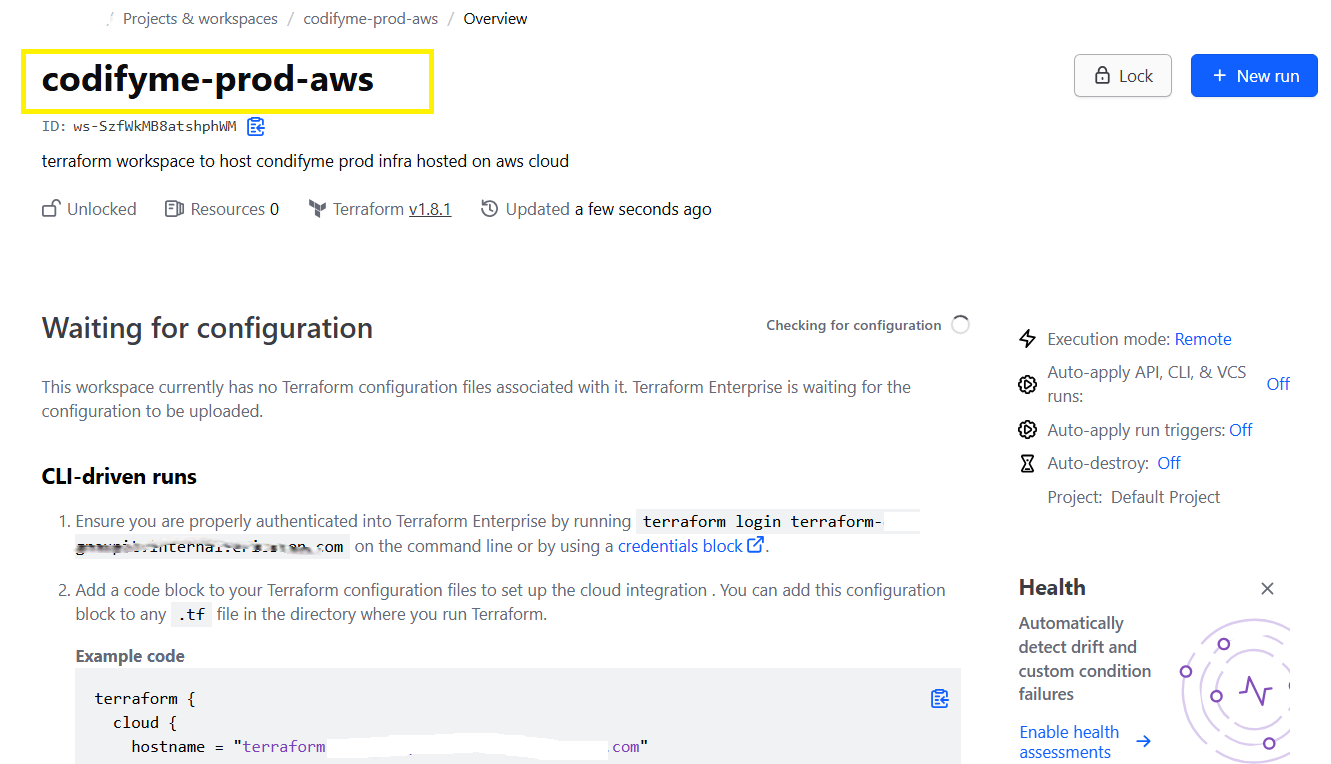 - 🔗 Link your Git repository to the workspace for automated plan and apply workflows (valid only if using VCS-driven workflow).