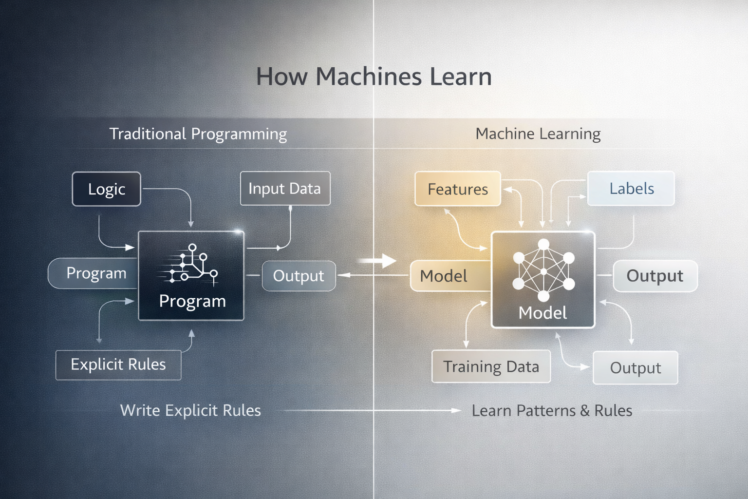 As an engineer, I used to write explicit rules: “If X, then do Y.” Machine learning flips this on its head. Instead of coding rules, you give the system examples—and it learns patterns from data.